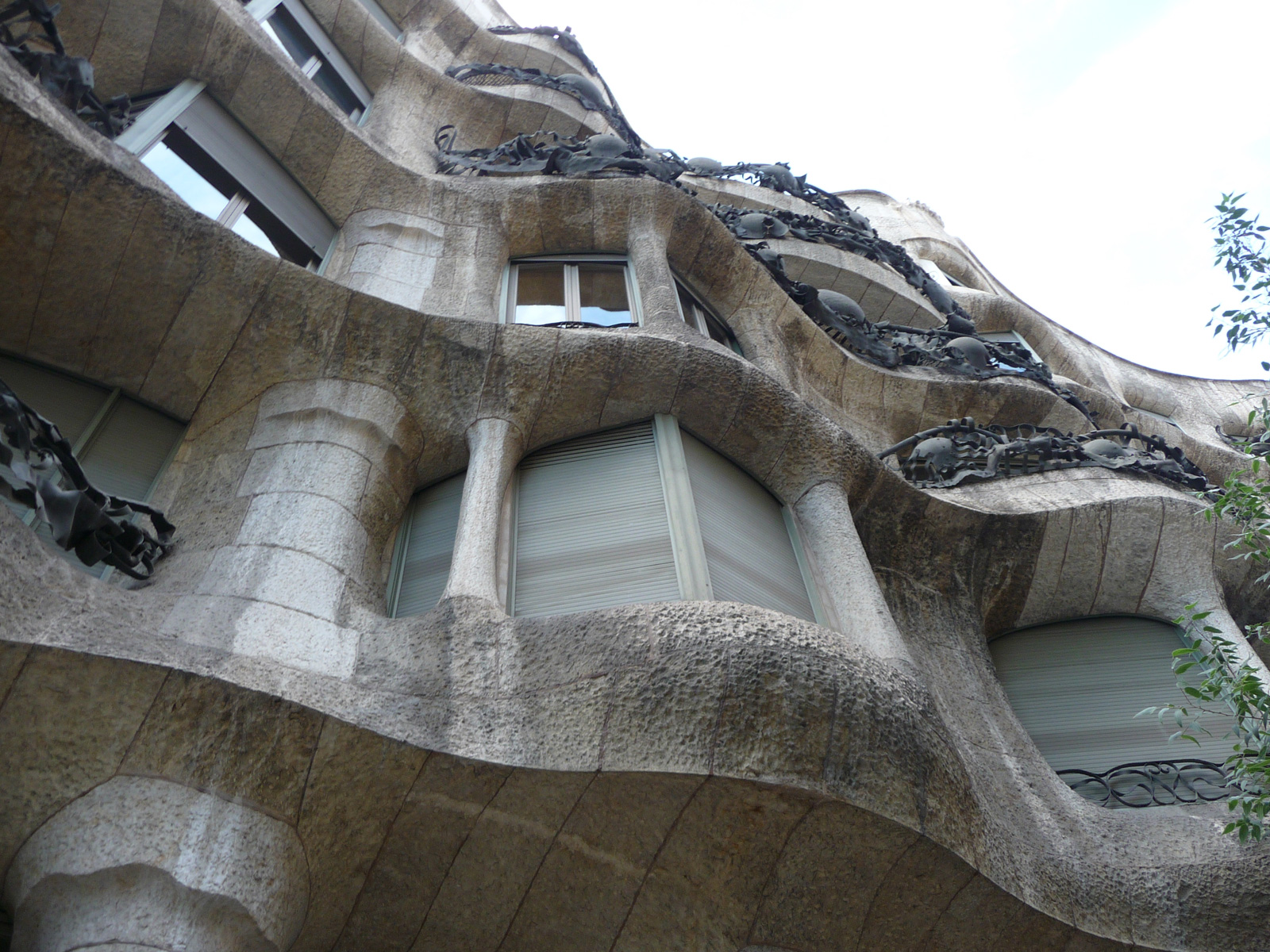 Потом-то мы поняли, что спрашивать надо было про Дом Мила. Этот дом Гауди построил в 1910 году, и это была его последняя светская работа. После Дома Мила он полностью отдал себя работе над Храмом «Саграда Фамилия». Жители Барселоны сначала не восприняли Дом Мила и называли его Педрера, La Pedrera (каменоломня), но потом привыкли и стали гордиться домом. Так водится у людей. Сначала все нетрадиционное принимают в штыки, а потом выясняется, что дом вошел в Список Всемирного Наследия ЮНЕСКО. Ни одной прямой линии.