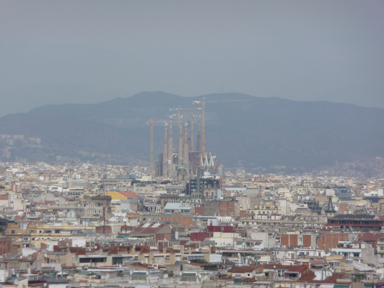 Вдали видно Храм Саграда Фамилия. Пора возвращаться в Бланес. Там нас ждет ужин и море. Теперь только в следующий раз облазим гору Монтжуик, посмотрим Дом Костей по проекту Гауди, побываем в парке Гуэль, где, говорят, «застыли в камне бурные эмоции Гауди», посмотрим и послушаем светомузыкальное шоу фонтанов перед Национальным Дворцом Каталонии. А сегодня и без того мы полны впечатлениями. Ошеломительная Барселона!Про поездку по второстепенным дорогам с приключениями к горе Монсеррат, про испанскую полицию, про фуникулер и зубчатый поезд, про пешеходные тропы и красоты горы Монсеррат, про монастырь Монсеррат читайте на странице «Монсеррат — гора и монастырь».